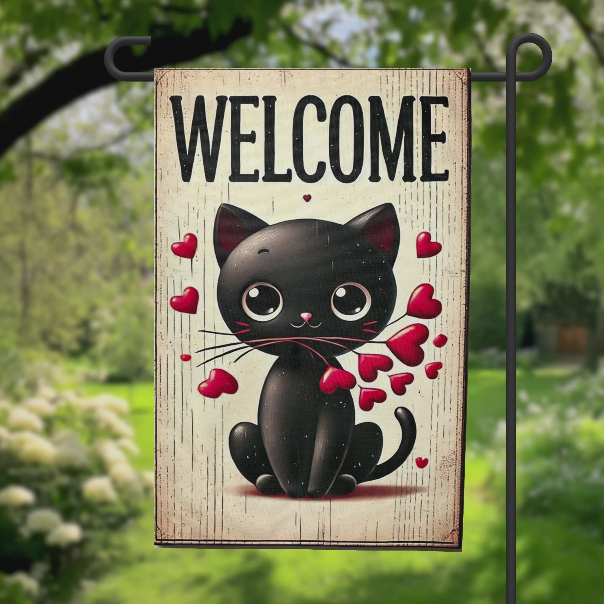 Welcome Kitty Hearts Garden Flag