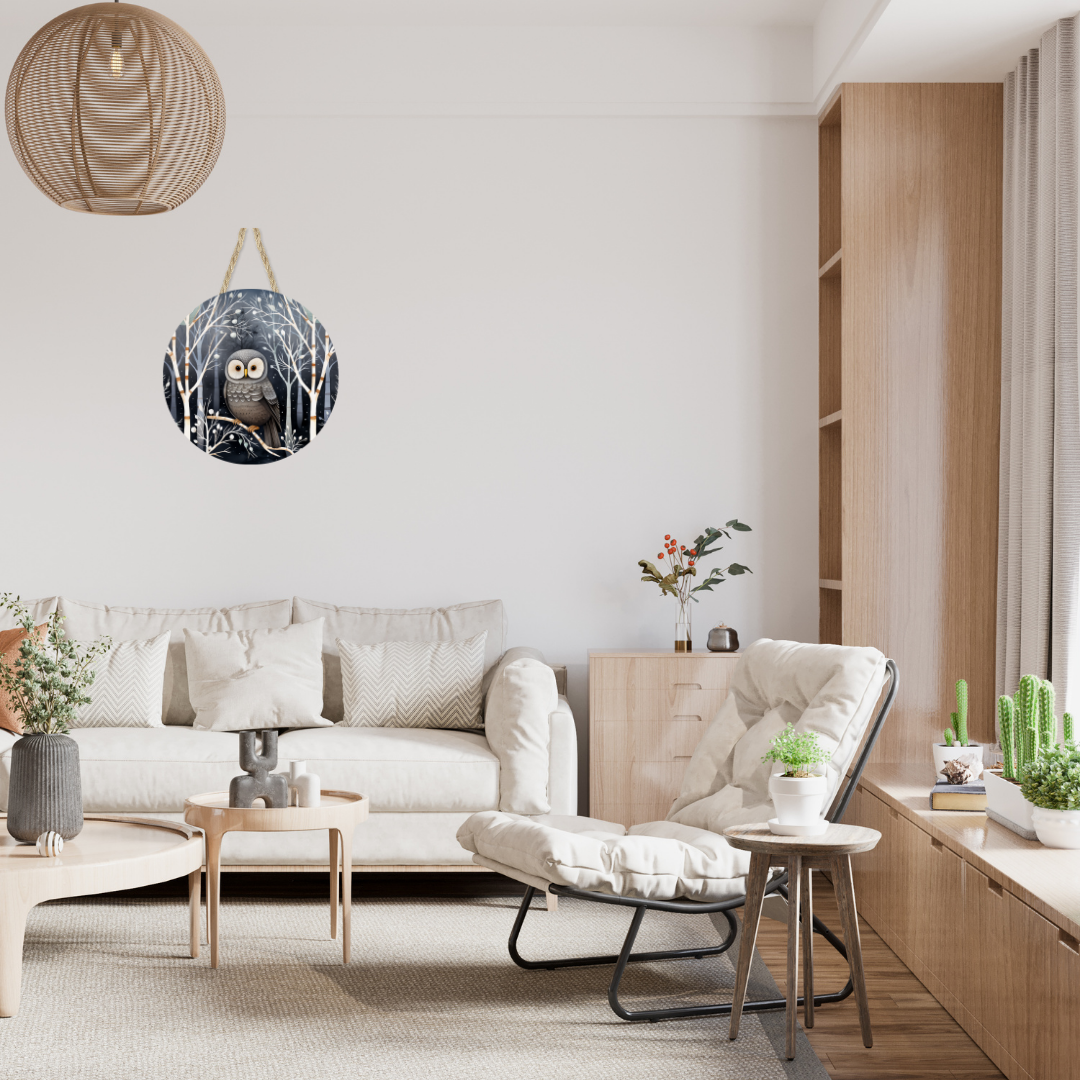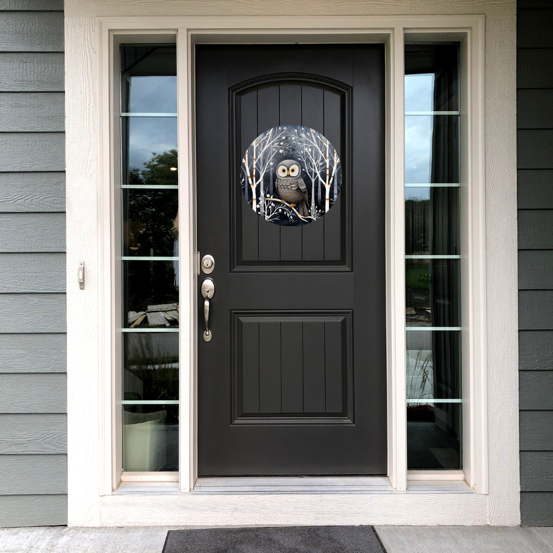 Winter Owl In Tree Round Hanging Door Sign